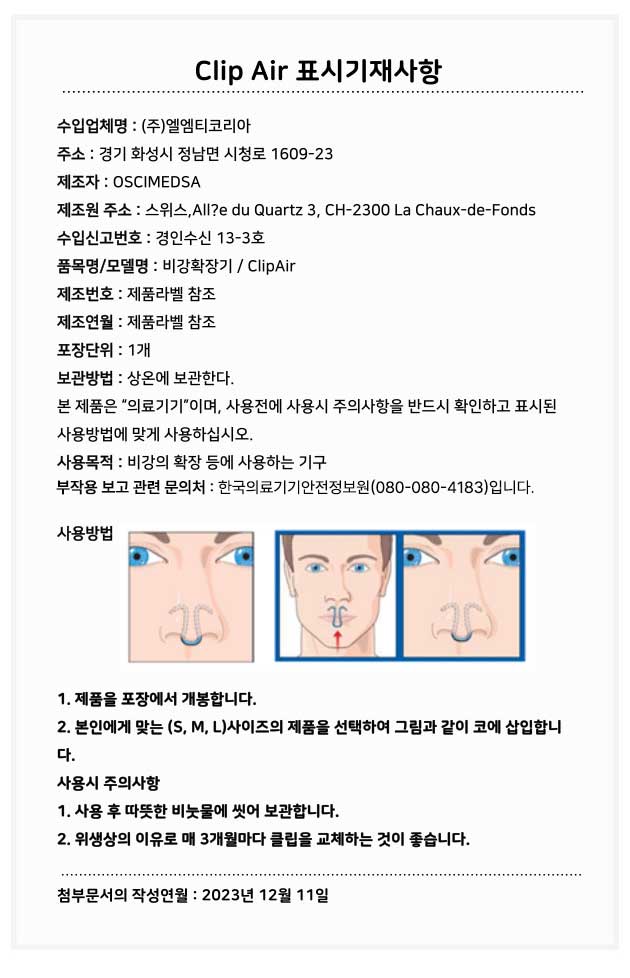 클립에어 표시기재사항