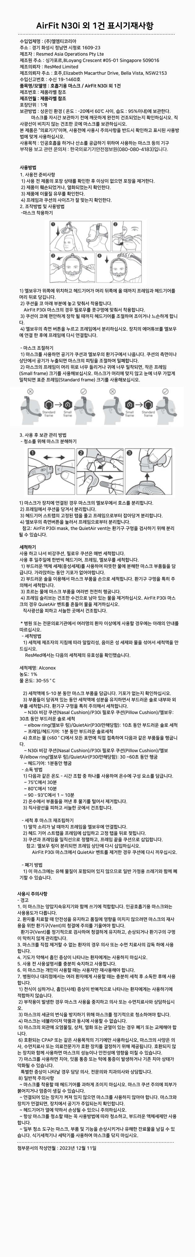 AirFit N30i 외 1건 표시기재사항